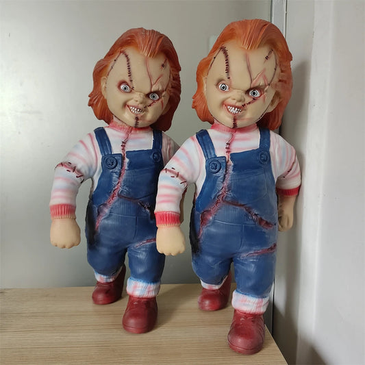 Child's Play 1:1 Chucky Doll Standing Statue Horror Chucky Figure Model Toy Collectible Doll Halloween Room Decor Prop Kids Gift - 45cm Chucky dollSPECIFICATIONS Hign-concerned Chemical: None Model Number: Child's Play Chucky doll Choice: yes Product Details: Name: Chucky DollMaterial: High quality latexSize: 45*25*20cm(1inch=2.54cm)Weight: 0.7 kg1. Due to manual measurement, there will be a 1-3cm difference in size and a 3-5g difference in weight. This is...