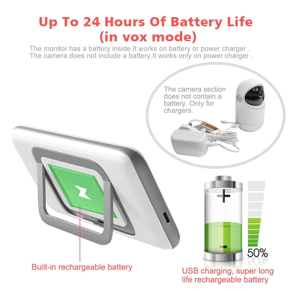 The baby unit has 6 high intensity infrared Leds,Allows you to care your babies in dark,keeping an eye on baby all night.