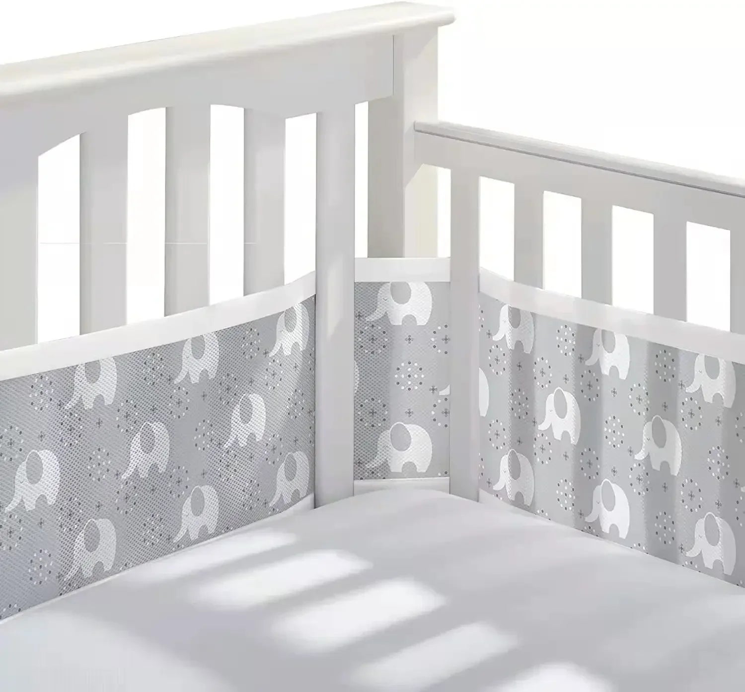 Baby Breathable mesh bed liner fits 4 panel crib sandwich breathable bed around baby fence