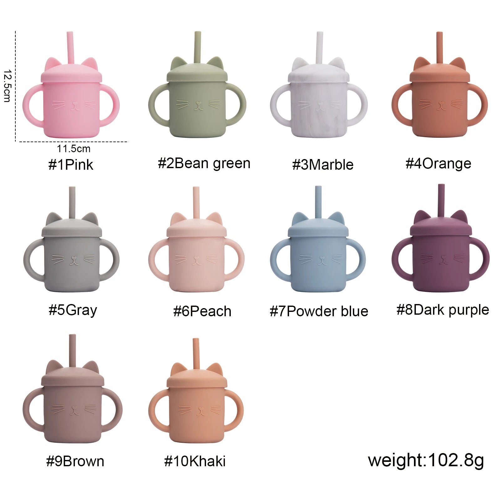 2021 New Baby Silicone Cups Baby Learning Drinking Straw Cup Food Grade Children Non-slip With Handle Feeding Water Cup BPA Free