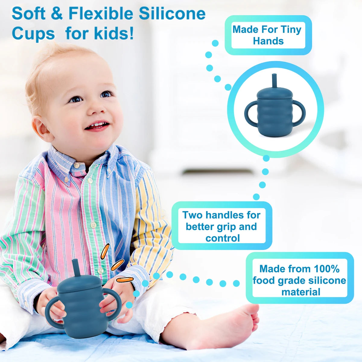 Baby Silicone Sippy Cups BPA-Free Portable Storage Snack Container Feeding Cup For Children Leakproof Learning Drink Cup Sets