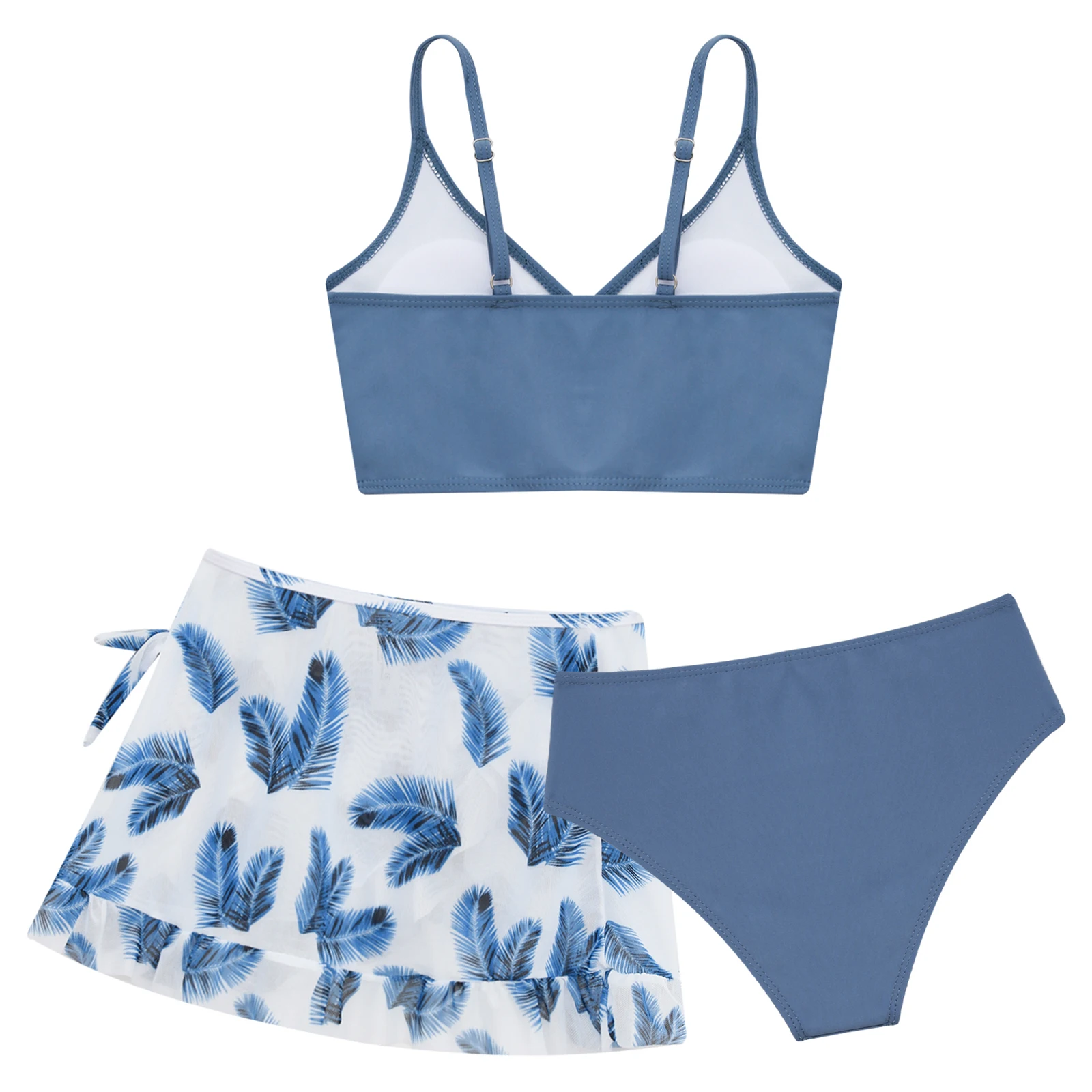 3Pcs of bikini top, bikini bottoms and cover up mesh skirt for girls, vivid floral print make girls more beautiful.