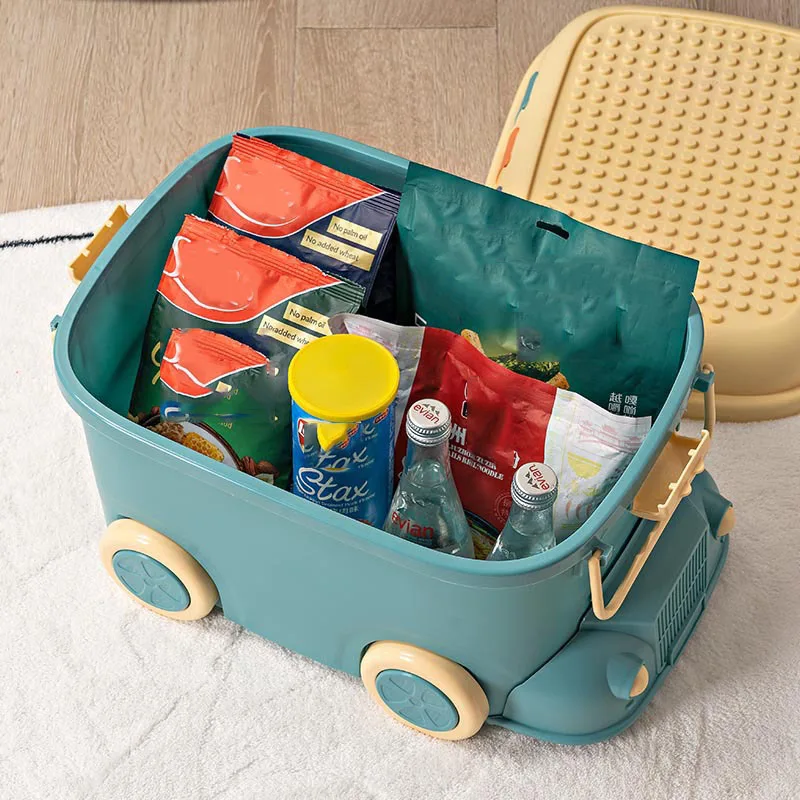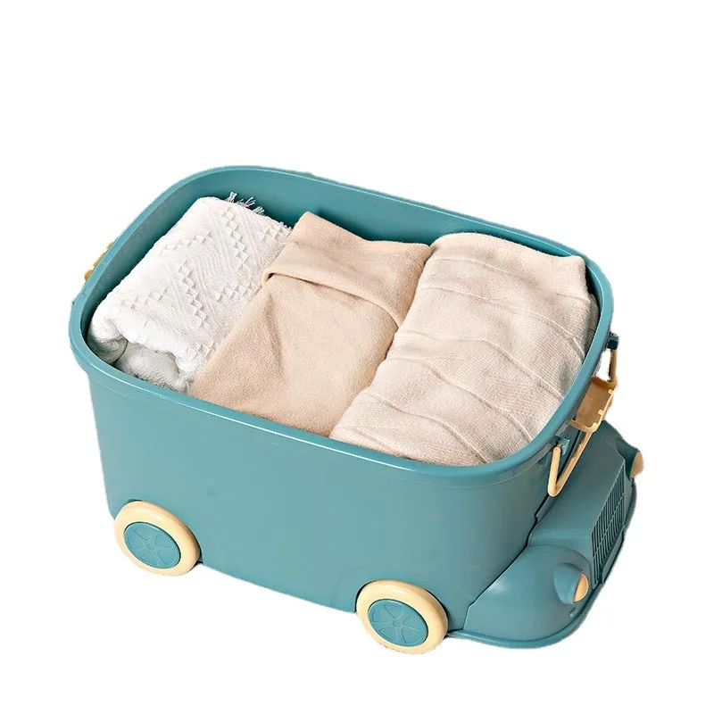 Building Block Storage Box Baby Clothes Sorting Box with Pulleys Cute Cartoon Snacks Container Toy Organizer Boite De Rangement
