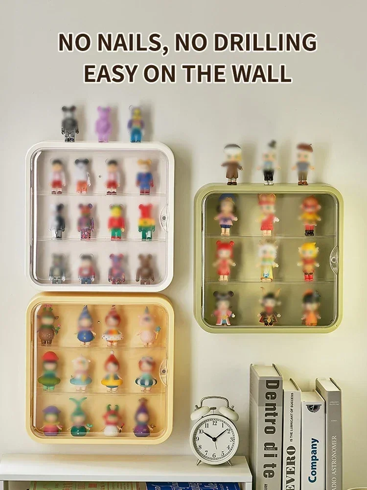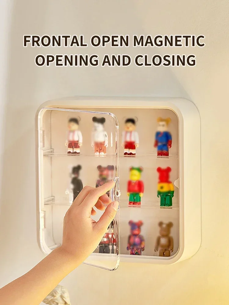 innovative step design, storage display two in one, high-definition dust cover inside clear display box cover seamless fit dust easy to take care of. It can be attached to the wall to save space, and the buckle design prevents dust intrusion.Positive magnetic opening and closing, easy to open, take and put without obstruction