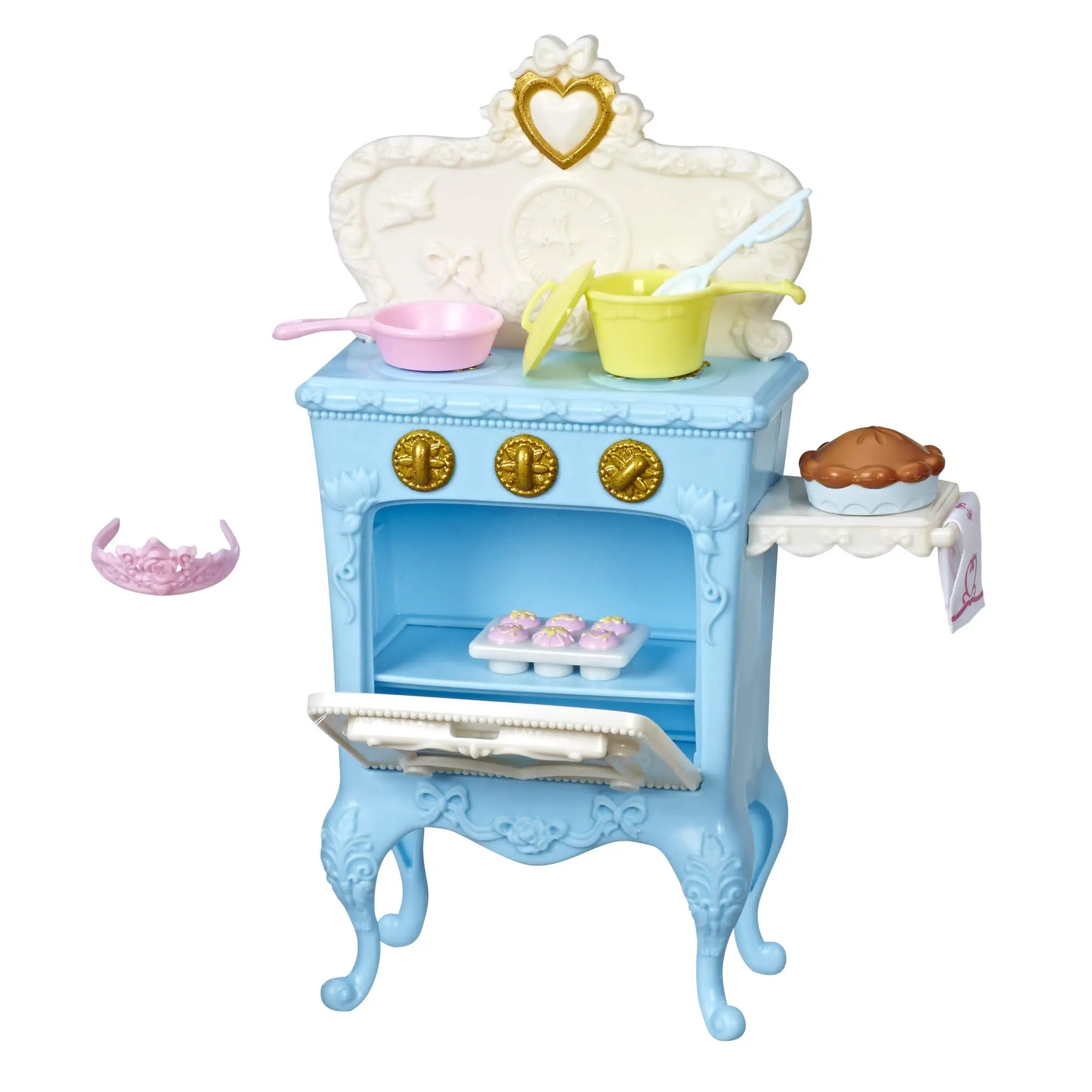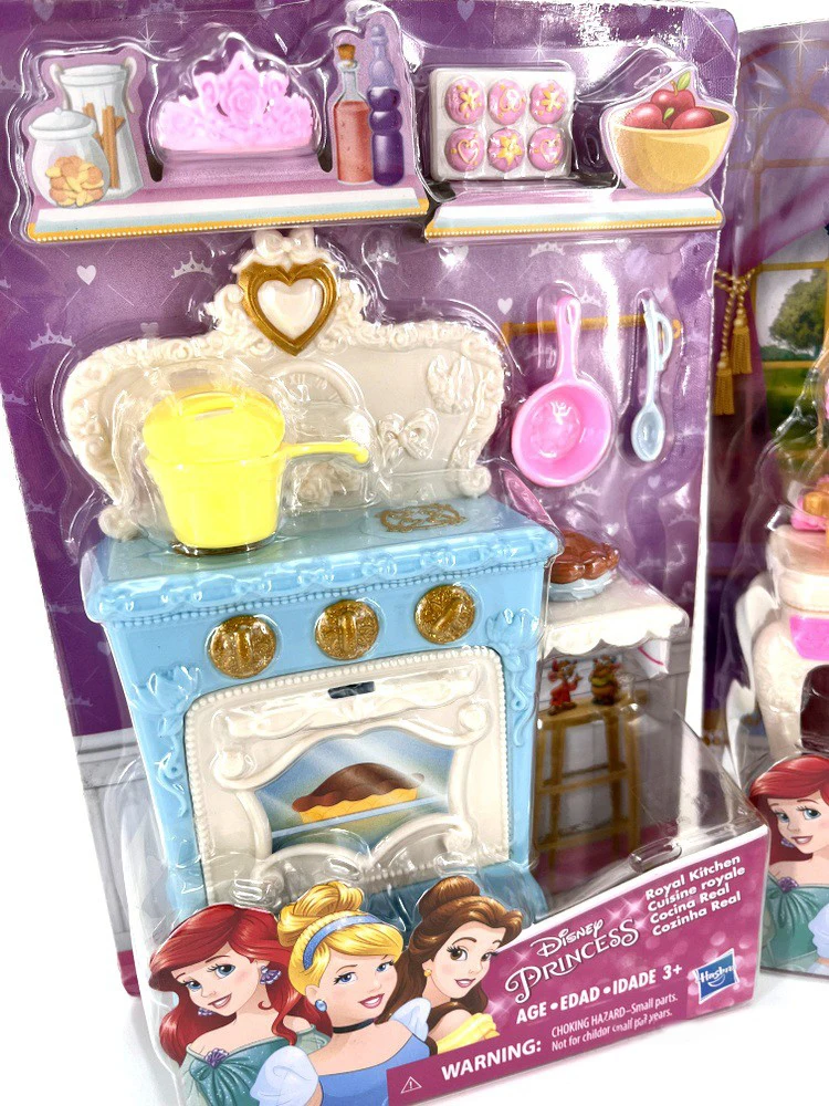 Build out the Disney Princess world with this royally themed kitchen set that's fit for any Disney Princess doll! The kitchen set includes a stove with an oven door that opens, as well as a tiara (because who doesn't wear a tiara when they cook?), pot and pan, Muffin tin, and more. Kids can imagine helping their favorite Disney Princess make delicious treats with royal flair! Dolls sold separately.