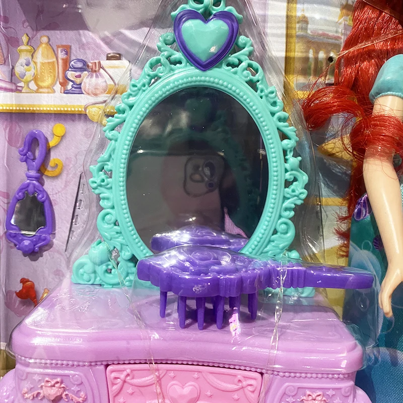 When it comes time to prepare for a royal ball or garden party, Disney Princess Ariel sits on her dressing table to base you and prepare you. This lovely dressing table set includes an Ariel doll with a fabric skirt in its characteristic color, a pair of shoes and fashion accessories such as a brush, tiara and more. The box opens and closes on the dressing table so children can store smaller accessories there