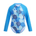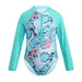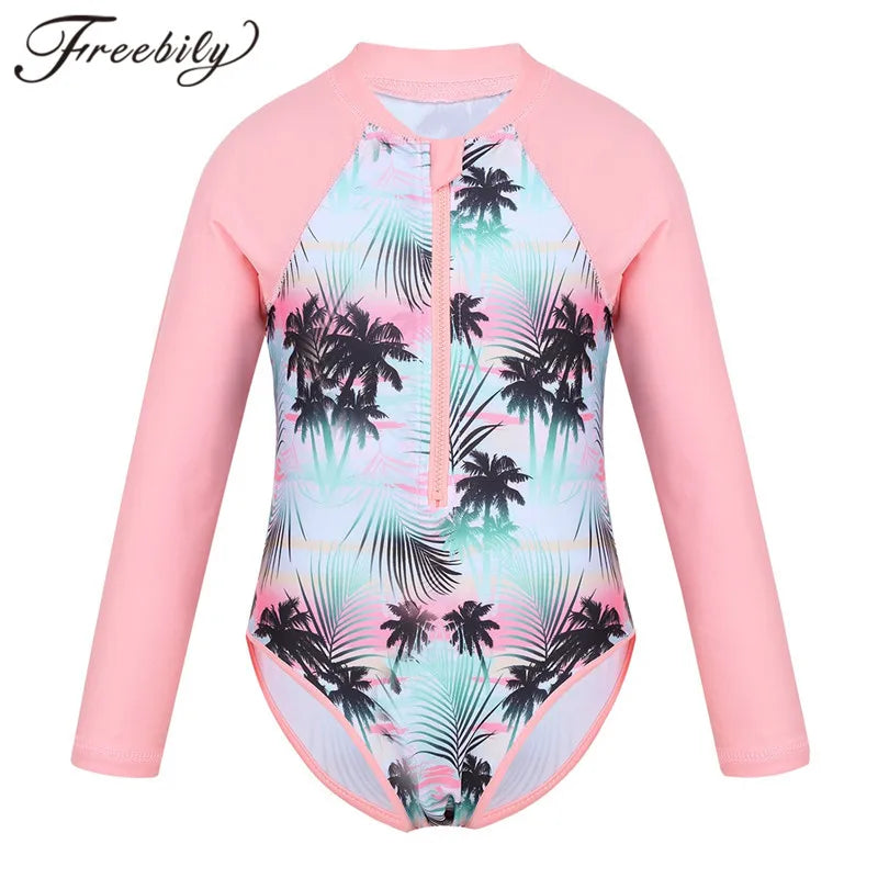 Summer Swimming One-piece Kids Girls Swimsuit Long Sleeves Palm Printed Zippered Bathing Suit Swimwear Rash Guard Beach Wear