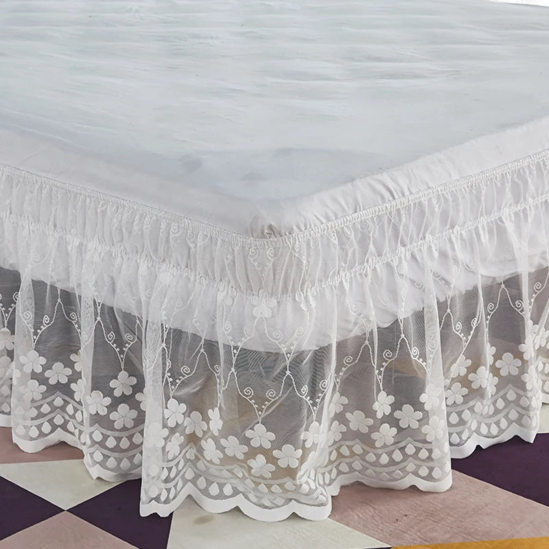 3.The lace is lovely and the bed skirt lays perfectly on the mattress. It is truly the best bed skirt you have ever owned.